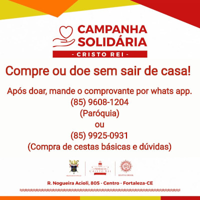 Fevereiro chegou e o DOMINGO SOLIDÁRIO não podia faltar, como uma ação importante, na Paróquia Cristo Rei. Com um empenho extraordinário de todas as equipes pastorais da nossa Paróquia, em plena pandemia, o milagre da partilha foi consumado. Arrecadamos mais de uma centena de CESTAS BÁSICAS, para serem doadas aos irmãos mais carentes da nossa cidade. Obrigado a todos os paroquianos, amigos e doadores anônimos que contribuíram de alguma forma para esse evento se tornar realidade e atingir o seu objetivo. Obrigado, Pai, pela oportunidade de testemunhar o Seu amor, através do exercício da generosidade de tantas pessoas que deram o seu SIM, para ajudarem ao irmão sob risco e vulnerabilidade social.