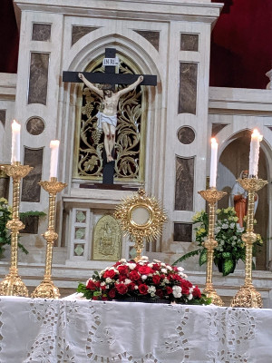 Foi realizada a benção das imagens conduzida pelo pároco Pe. Laércio de Lima SJ, adoração ao Santíssimo Sacramento exposto, récita do Terço da Misericórdia, momento de louvor musical, encerrando-se com a benção com o Santíssimo Sacramento dada por meio do pároco.