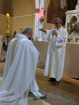 No final da tarde desta sábado (17/4), na Igreja de Cristo Rei, foi celebrada a missa de envio do Pe. Laércio de Lima SJ, sendo presidida por ele mesmo e concelebrada pelo Pe. Acrizio Sales SJ, Pe. Jacques Trudel SJ e Diácono Marcos Venturini SJ.
